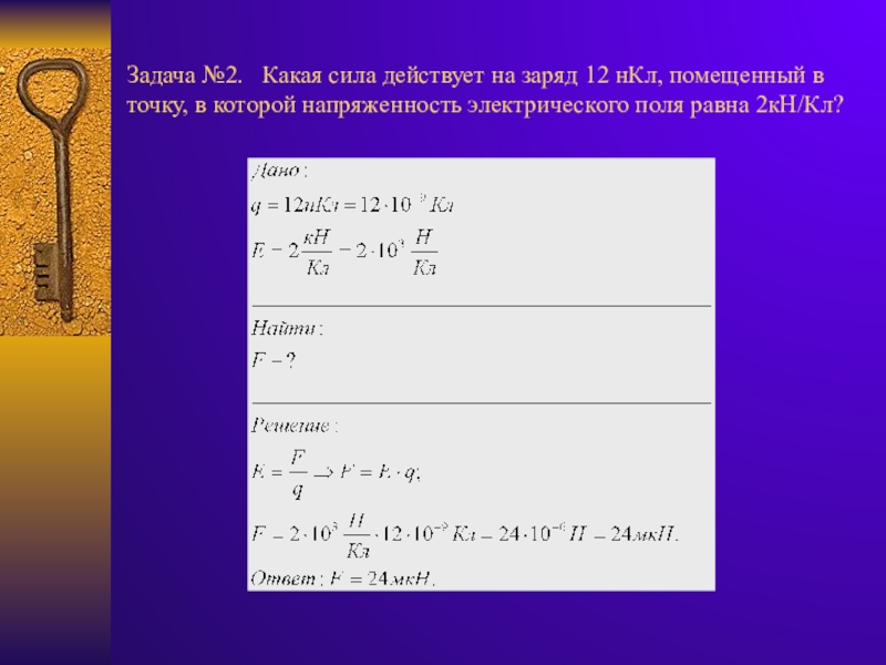 Слайд 23Задача №2. Какая сила действует на заряд 12 нКл,