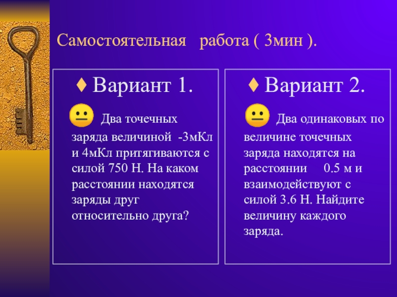 заряда величиной -3мКл и 4мКл притягиваются с силой 750 Н.