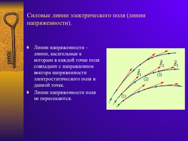 Слайд 10Силовые линии электрического поля (линии напряженности).