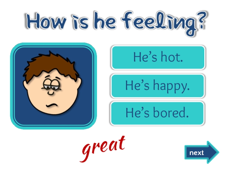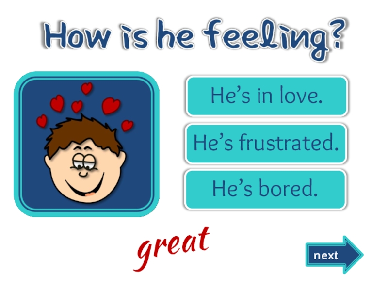 Слайд 13He’s happy.