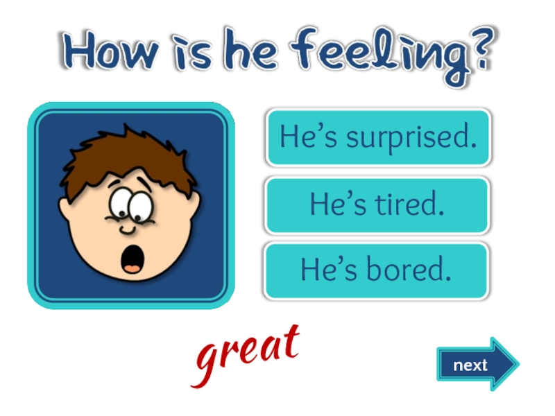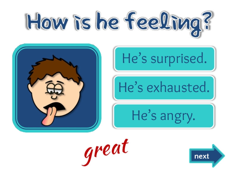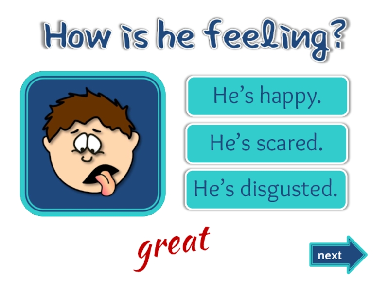 He’s happy.He’s scared.He’s disgusted. nextgreat