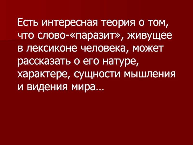 Слайд 6 Есть интересная теория о том, что слово-«паразит», живущее в