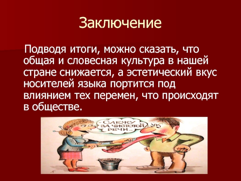 напрямую отражается в языке. С экранов телевизоров, по радио на улицах городов мы слышим сниженную, вульгарную речь, граничащую с уголовным жаргоном, перегруженную словами-«паразитами».