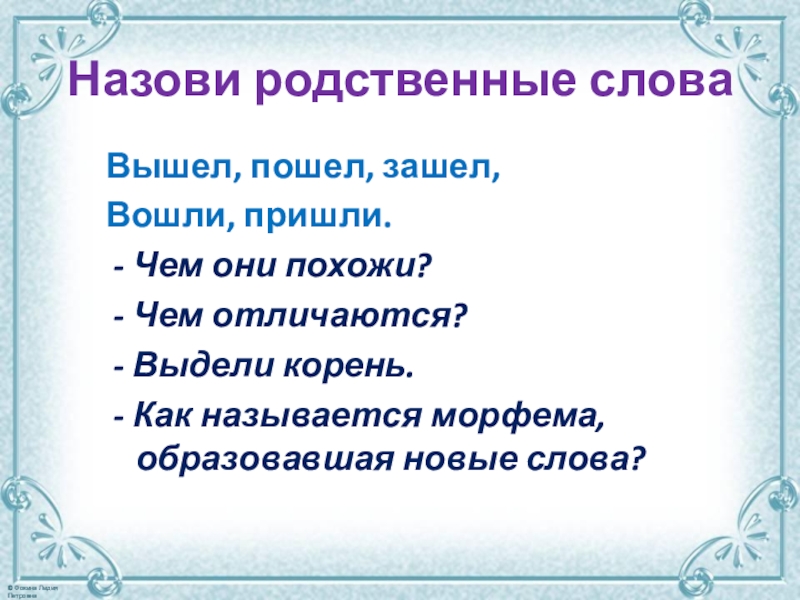 Морфема – минимальная значимая часть слова.