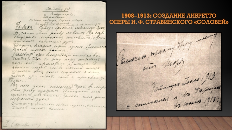 Слайд 101908‒1913: создание либретто оперы И. Ф. Стравинского «Соловей»