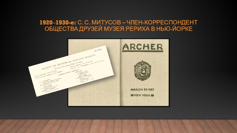 Слайд 221920‒1930-е: с. с. митусов – член-корреспондент Общества друзей Музея Рериха