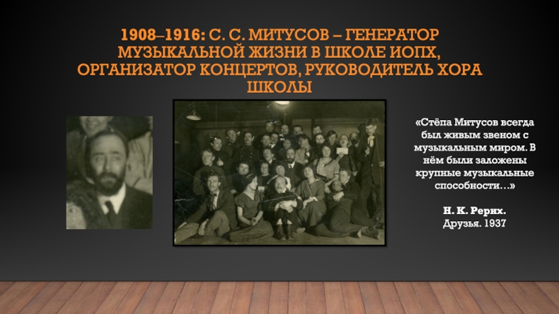 Слайд 131908‒1916: С. С. Митусов – генератор музыкальной жизни в Школе