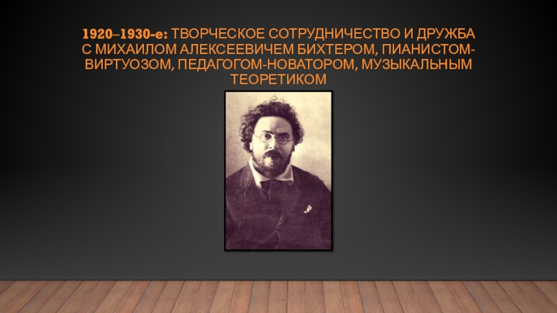 Слайд 191920‒1930-е: Творческое сотрудничество и дружба с Михаилом Алексеевичем бихтером, пианистом-виртуозом, педагогом-новатором,