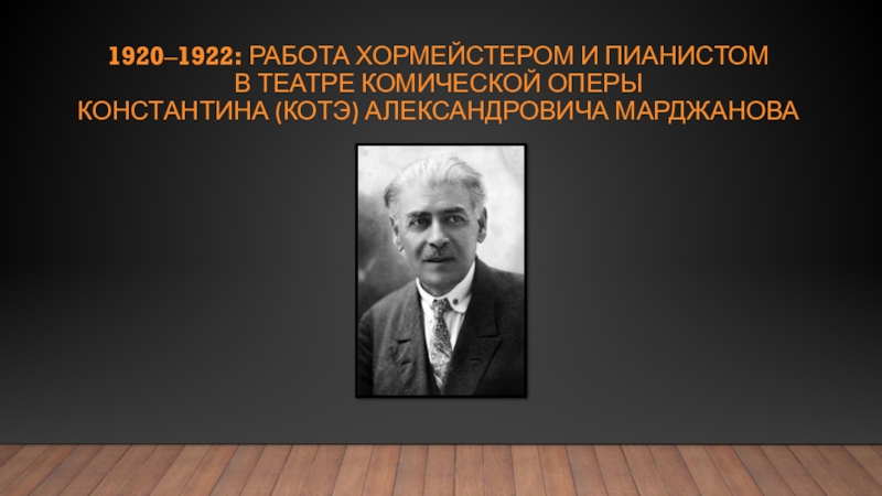 Слайд 171920‒1922: работа хормейстером и пианистом в театре комической оперы Константина (котэ) Александровича