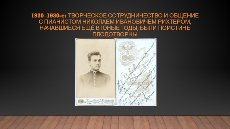 Слайд 201920‒1930-е: творческое сотрудничество и общение с пианистом Николаем Ивановичем Рихтером, начавшиеся