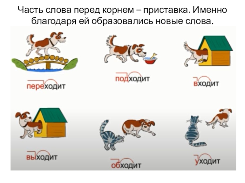 Слайд 6Часть слова перед корнем – приставка. Именно благодаря ей образовались