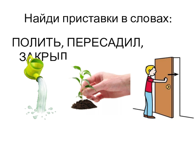 Найди приставки в словах:ПОЛИТЬ, ПЕРЕСАДИЛ, ЗАКРЫЛ,