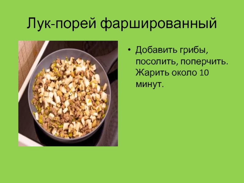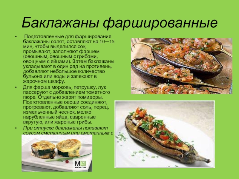 удаляют сердцевину. Образовавшееся углубление заполняют грибами, жареными со сметаной, укладывают на противень, заливают сметанным соусом, посыпают тертым сыром и запекают.