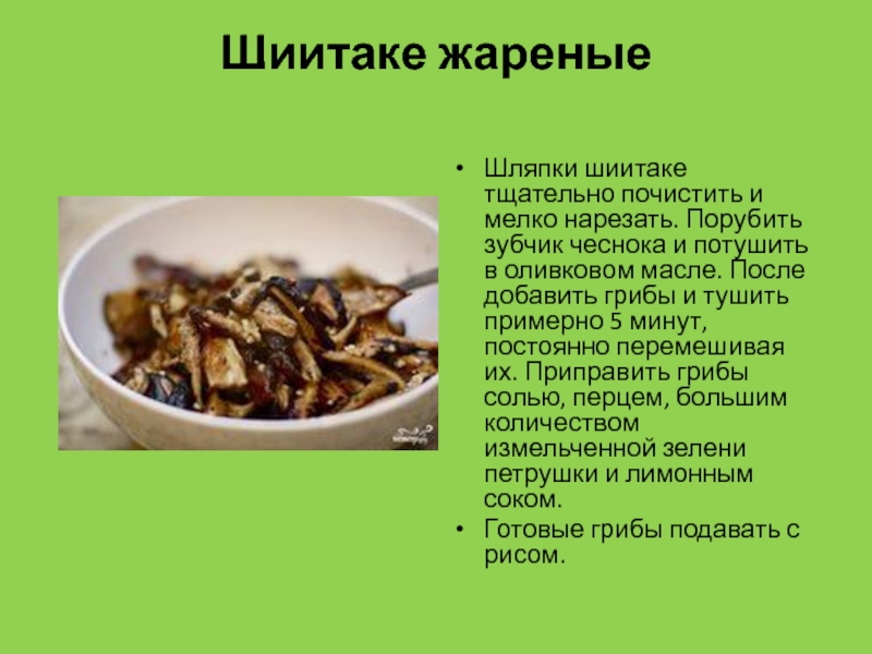 Шляпки шиитаке тщательно почистить и мелко нарезать. Порубить зубчик