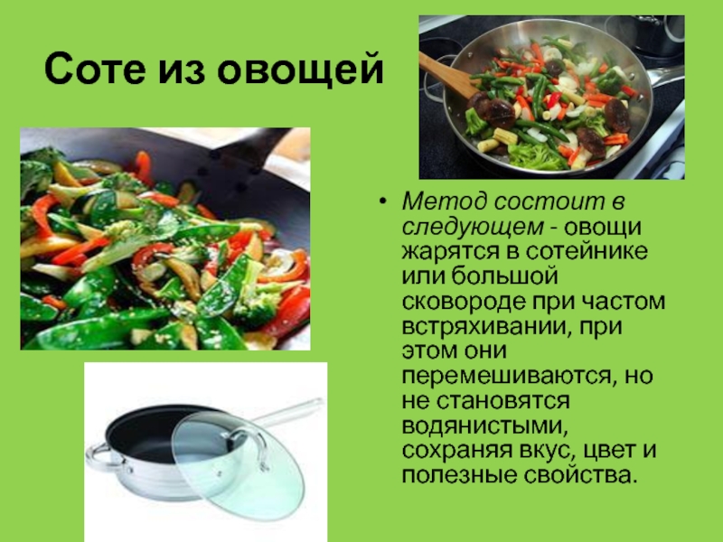 Слайд 40ОВОЩИ ЗАПЕКАЮТ НА ПРОТИВНЯХ ИЛИ ПОРЦИОННЫХ СКОВОРОДАХ В ЖАРОЧНОМ ШКАФУ