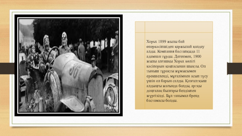 Слайд 5Хорьх 1899 жылы бай өнеркәсіпшіден қаржылай қолдау алды. Компания бастапқыда