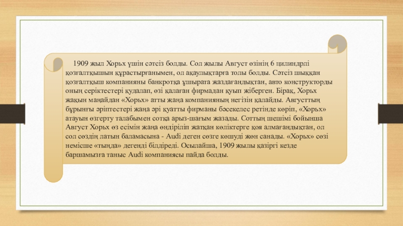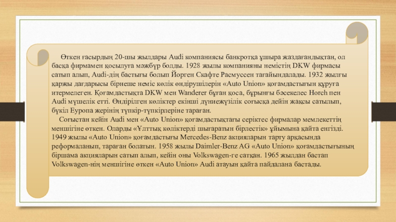 Слайд 9 Өткен ғасырдың 20-шы жылдары Audi компаниясы банкротқа