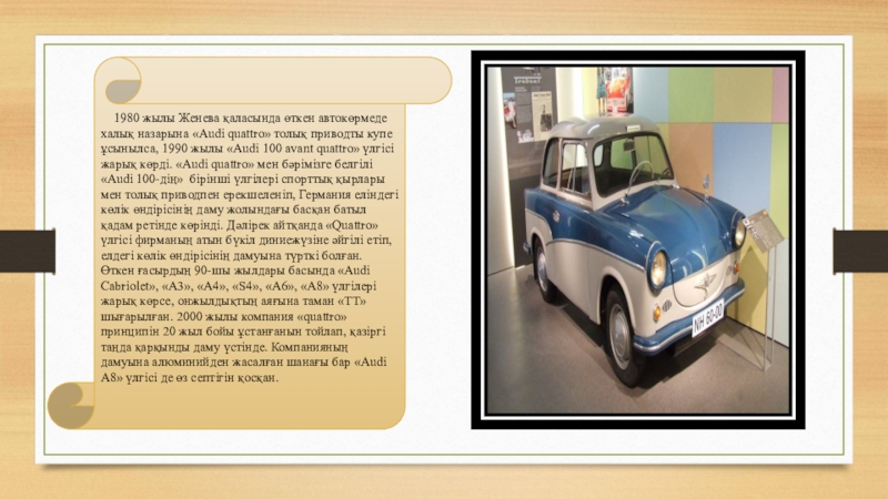 Слайд 11 1980 жылы Женева қаласында өткен автокөрмеде халық назарына