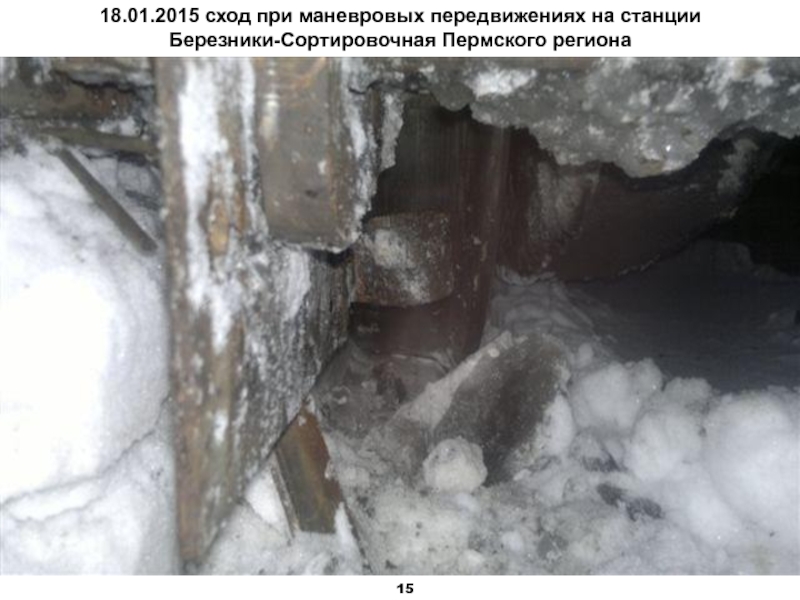 Слайд 1518.01.2015 сход при маневровых передвижениях на станции