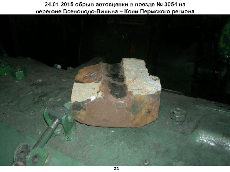 Слайд 2324.01.2015 обрыв автосцепки в поезде № 3054 на