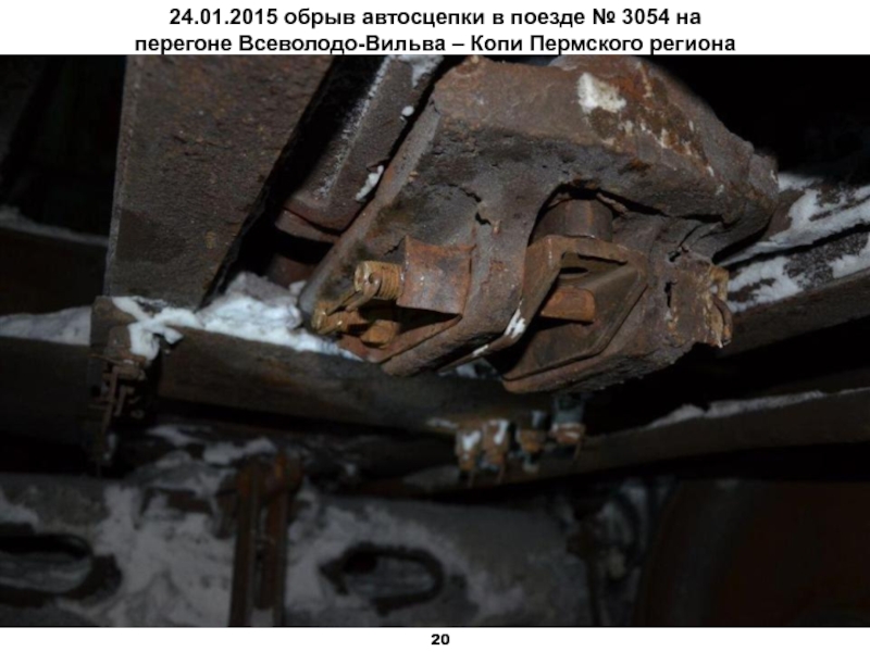 Слайд 2024.01.2015 обрыв автосцепки в поезде № 3054 на