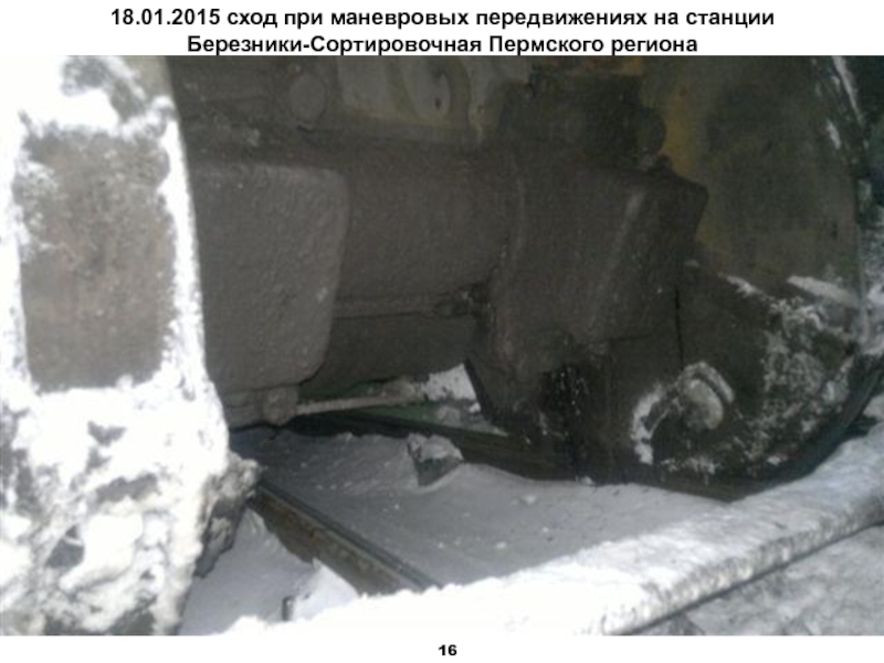 Слайд 1618.01.2015 сход при маневровых передвижениях на станции