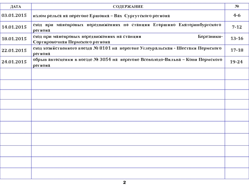 Слайд 814.01.2015 сход при маневровых передвижениях по станции Егоршино Екатеринбургского региона
