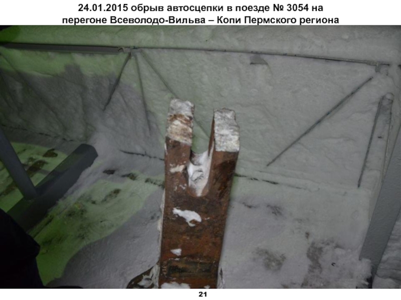 Слайд 2124.01.2015 обрыв автосцепки в поезде № 3054 на