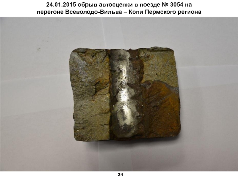 Слайд 2424.01.2015 обрыв автосцепки в поезде № 3054 на