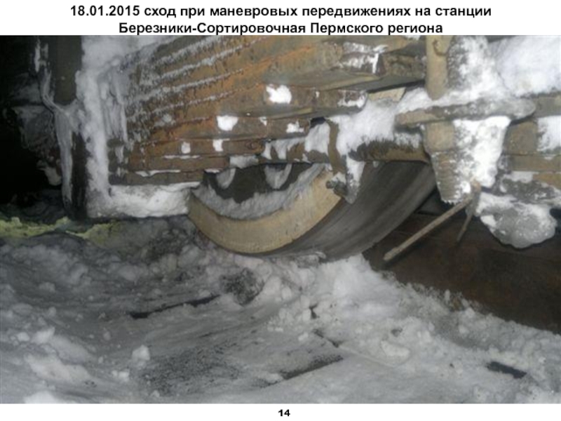 Слайд 1418.01.2015 сход при маневровых передвижениях на станции