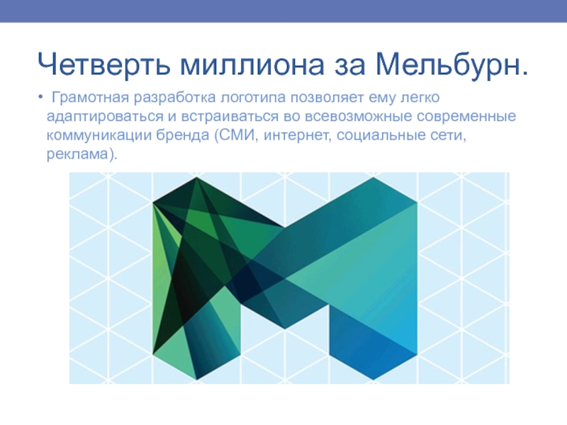 Четверть миллиона за Мельбурн. Грамотная разработка логотипа позволяет ему легко адаптироваться и встраиваться во всевозможные современные коммуникации