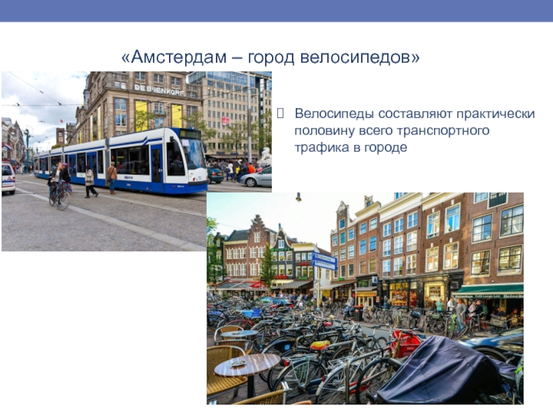 «Амстердам – город велосипедов»Велосипеды составляют практически половину всего транспортного трафика в городе