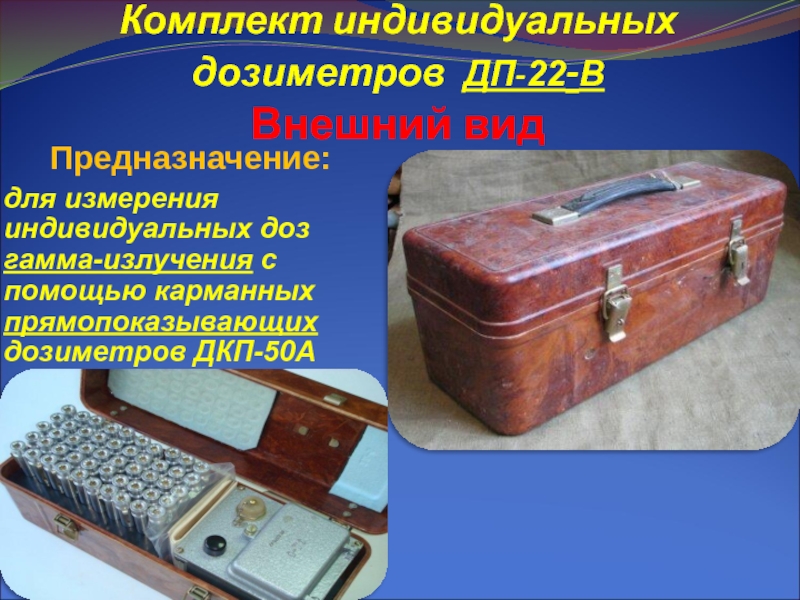 Дозиметр ДКП-50-А: а — общий вид; б — разрез; в—шкала;