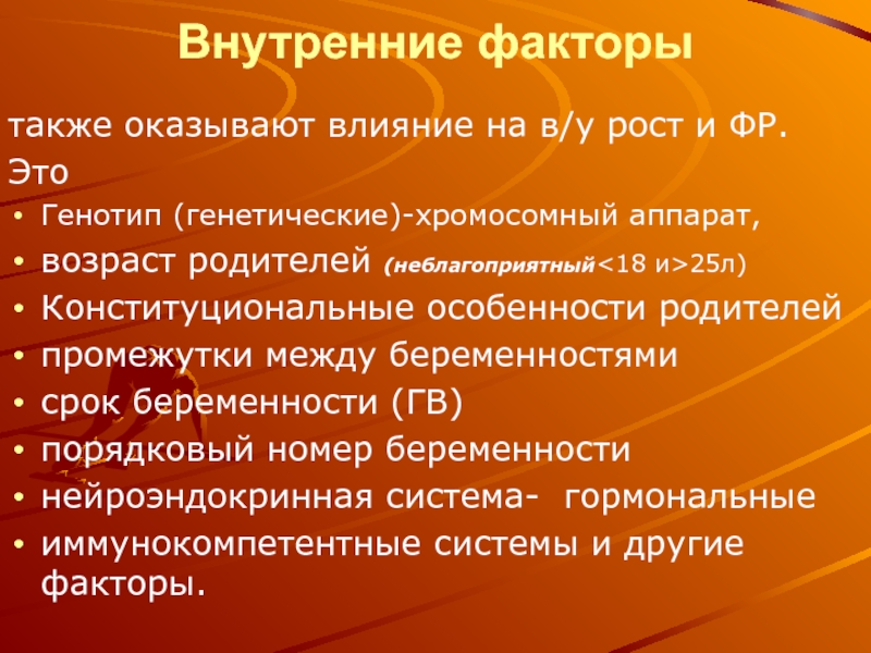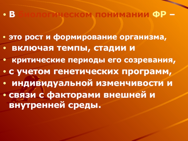 Слайд 9ФР обусловлено наследственностью и влиянием факторов внешней и внутренней среды.
