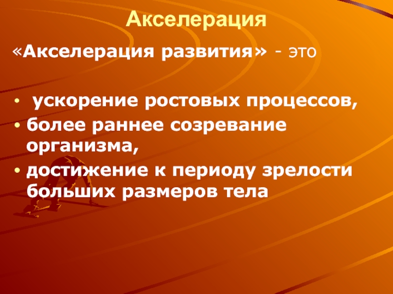Ускорение(замедление) процессов роста и развития, обнаруживаемое при сравнении людей