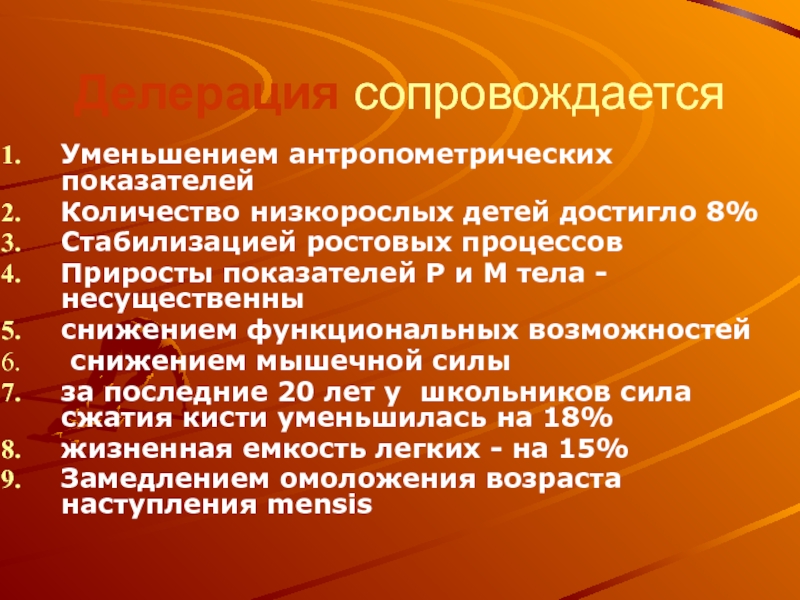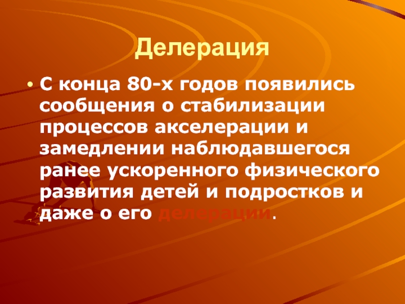 акселерации и замедлении наблюдавшегося ранее ускоренного физического развития детей и