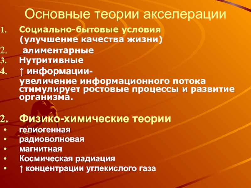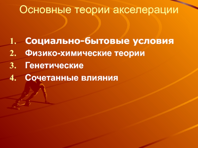 Слайд 108В последние 30 лет много обсуждались процессы акселерации, которые отмечались
