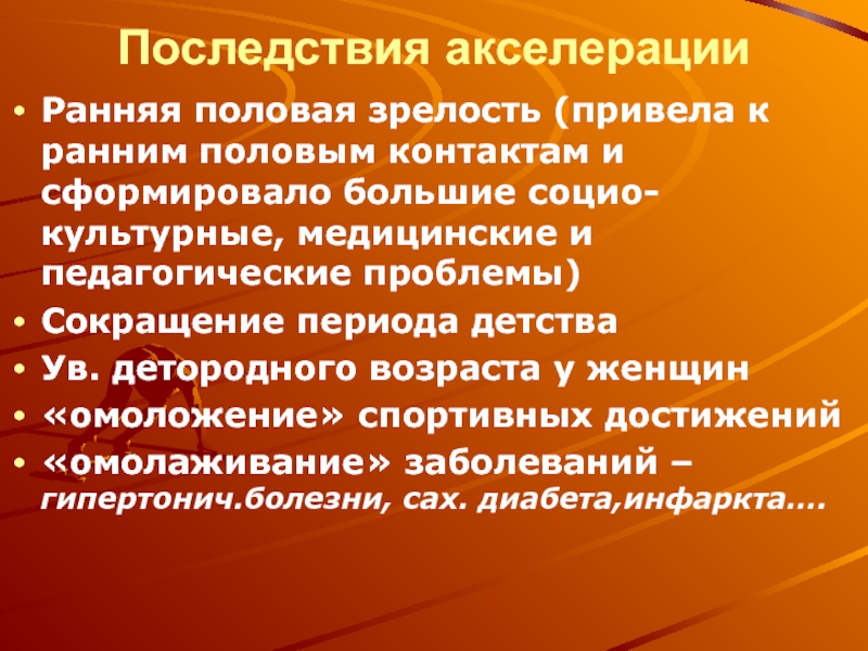 акселерация, происходящая последние 50 лет, имела не только положительные,