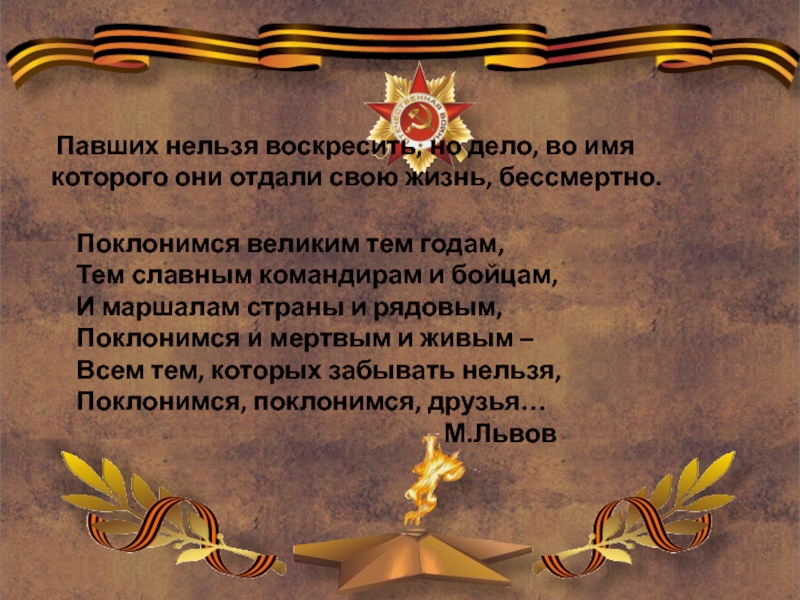 Слайд 20 Павших нельзя воскресить, но дело, во имя которого они отдали