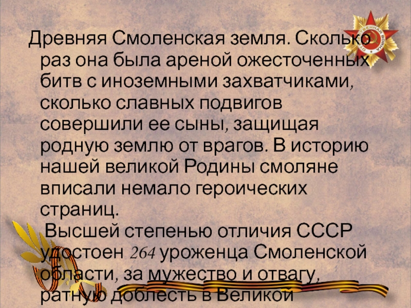 родную землю от врагов. В историю нашей великой Родины смоляне вписали немало героических страниц.