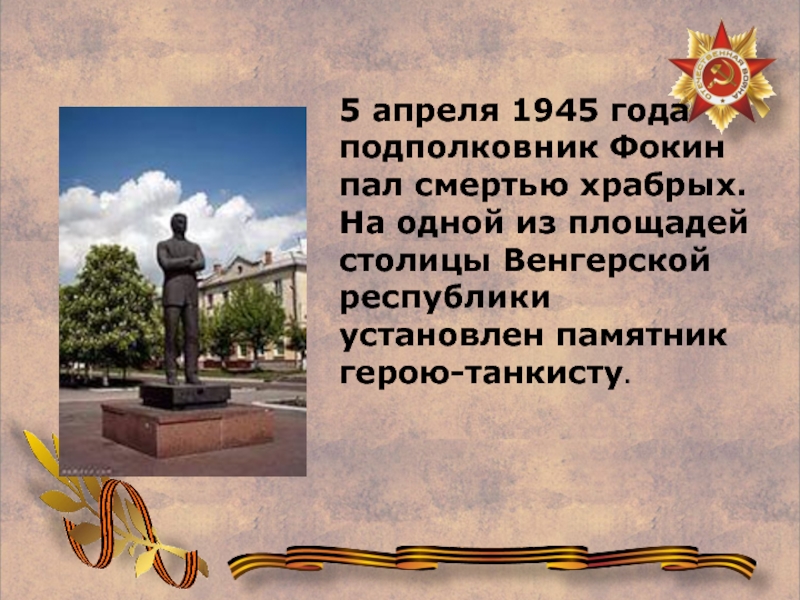 Слайд 95 апреля 1945 года подполковник Фокин пал смертью храбрых. На
