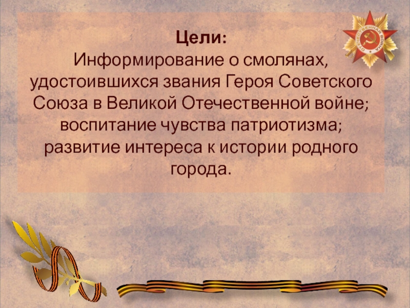 Информирование о смолянах, удостоившихся звания Героя Советского Союза в Великой