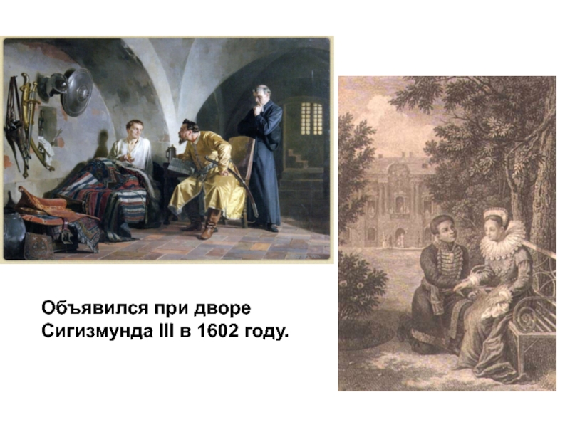 Слайд 23Объявился при дворе Сигизмунда III в 1602 году.