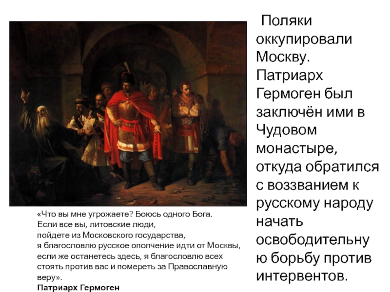 Слайд 53 Поляки оккупировали Москву. Патриарх Гермоген был заключён ими в Чудовом