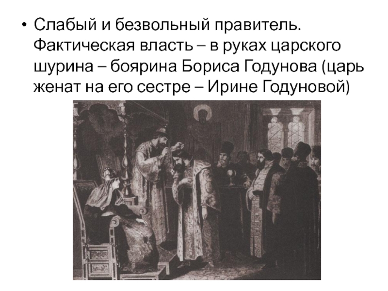 Слайд 10Слабый и безвольный правитель. Фактическая власть – в руках царского