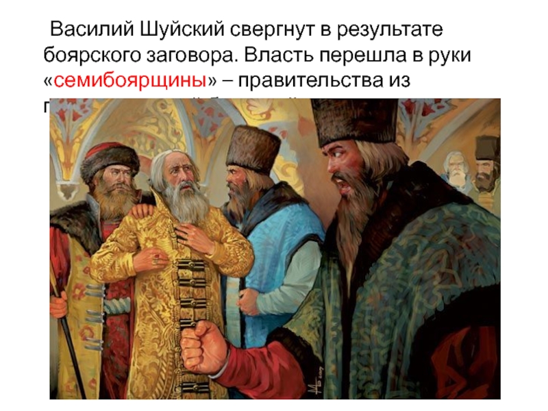 Слайд 50 Василий Шуйский свергнут в результате боярского заговора. Власть перешла в