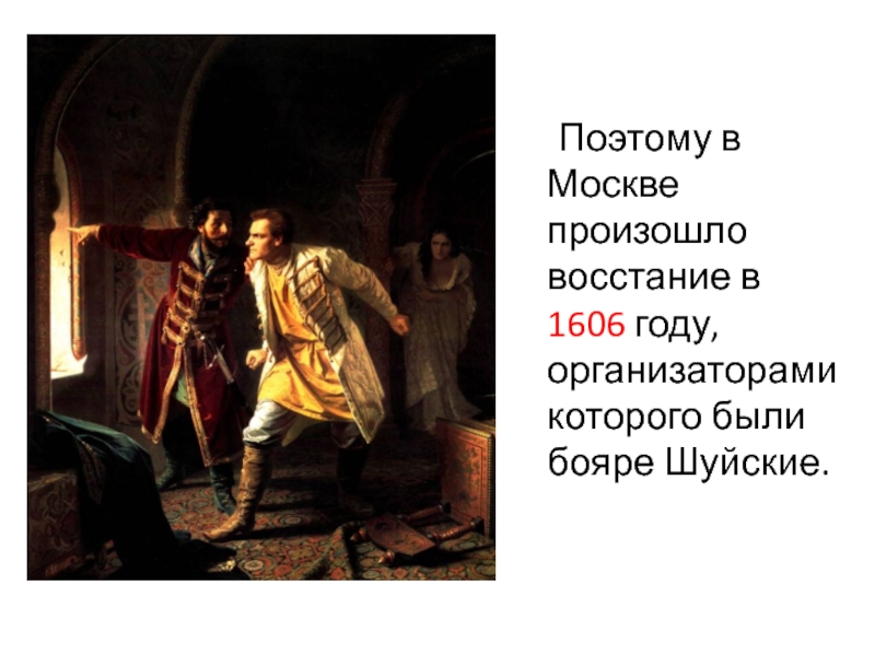 Слайд 31 Поэтому в Москве произошло восстание в 1606 году, организаторами которого