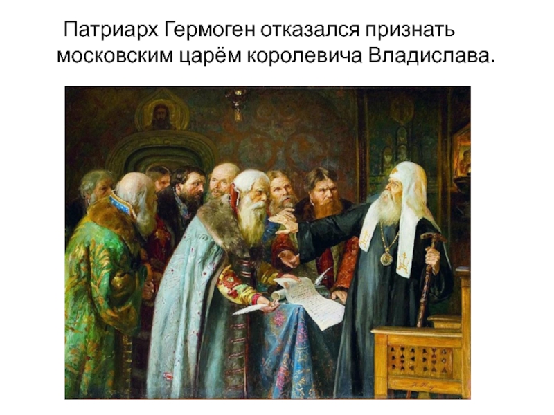 Слайд 52 Патриарх Гермоген отказался признать московским царём королевича Владислава.