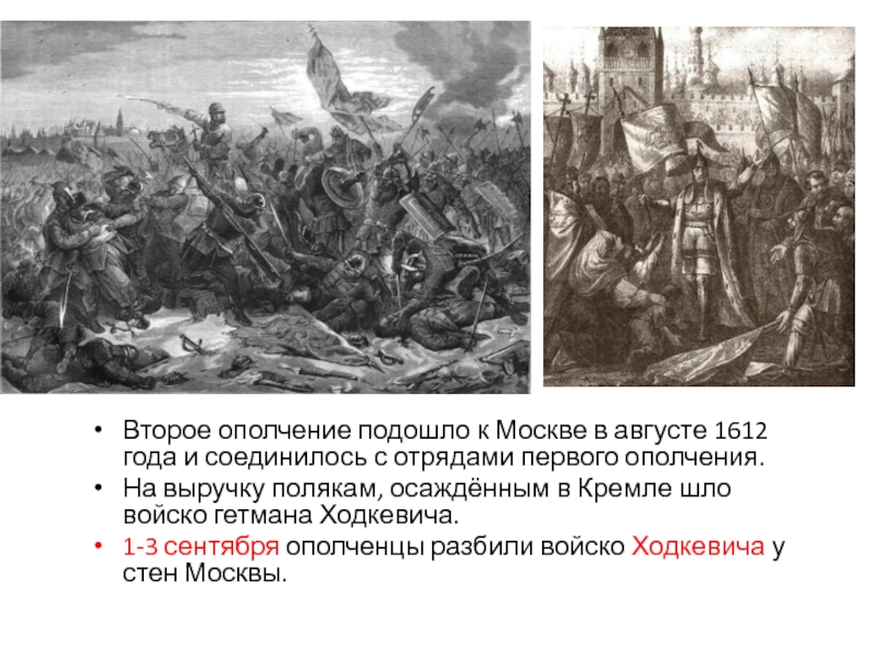 1-3 сентября ополченцы разбили войско Ходкевича у стен Москвы.
