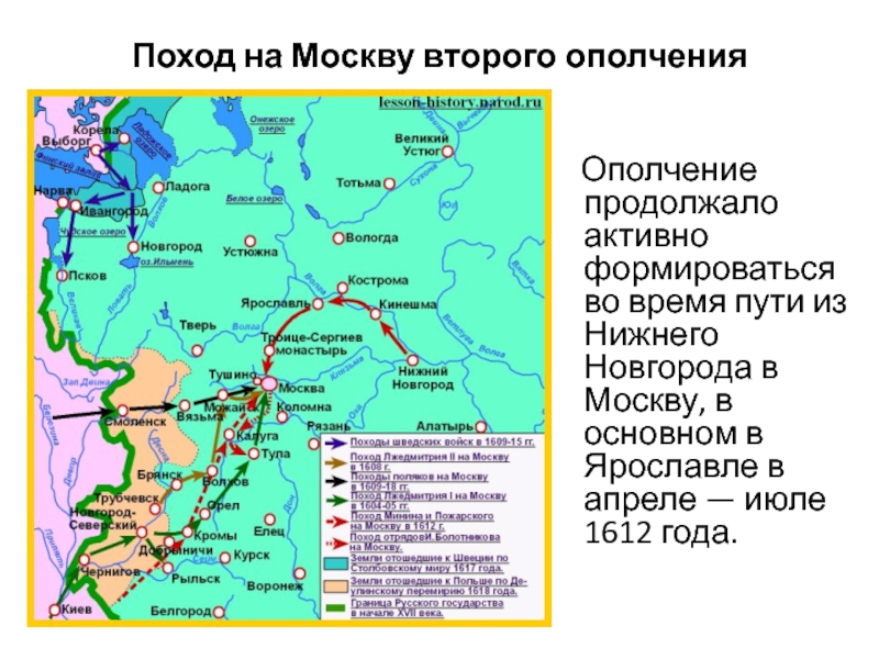 Слайд 65Второе ополчение подошло к Москве в августе 1612 года и